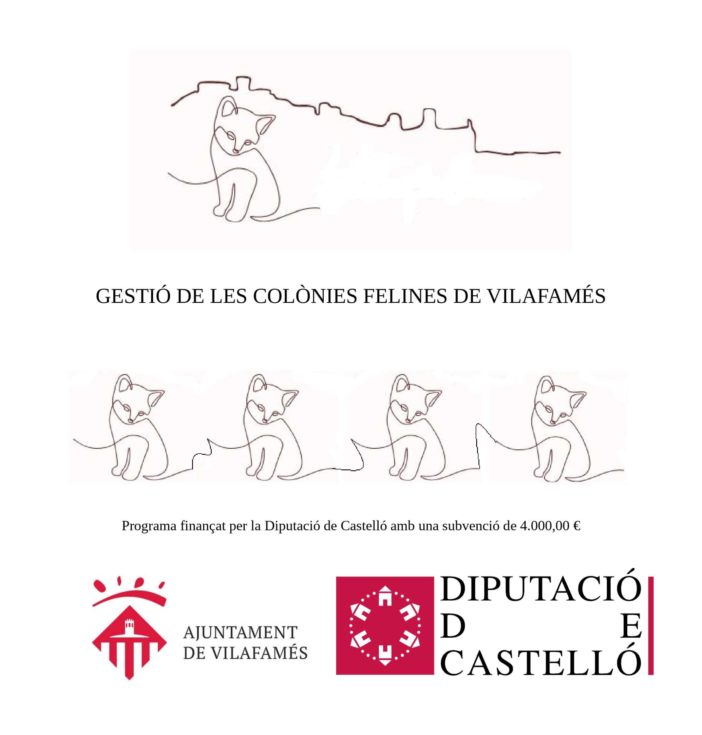 De momento, el pueblo ha conseguido esterilizar a 130 gatos siguiendo el método CER. Bajo esta línea de actuación, se asegura el bienestar de cada ejemplar en el tratamiento de captura, esterilización y retorno a su hábitat natural. Por otro lado, Vilafelins y el consistorio avanzan fases en la instalación de casas de refugio repartidas por el casco urbano. Por ahora, se han colocado dos casetas, como prueba piloto, situadas al final de la calle Paseo, integrado dentro del núcleo antiguo, que dan refugio a los gatos que habitan aquella zona. En este mismo sentido, se han empezado a instalar señales informativas que avisarán de la presencia de una colonia felina. Las placas están colocadas en parcelas y zonas de propiedad municipal, así como terrenos privados que han dado permiso para participar en esta iniciativa de bienestar animal que permitirá vigilar el incremento de ejemplares felinos en el municipio.